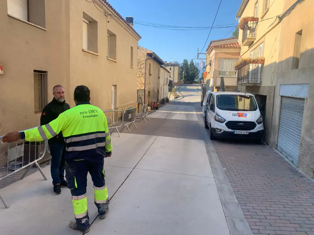 La actuación se planteó desde el exterior, actuando directamente sobre la zona en contacto con el terreno. Tras estudiar el comportamiento del muro y localizar las áreas más afectadas, se ejecutaron perforaciones estratégicamente distribuidas que permitieran trabajar en todo el espesor de la fábrica de piedra. A través de estos puntos se inyectó un gel de muy baja viscosidad, capaz de penetrar en juntas, microfisuras y huecos internos que no son visibles a simple vista.