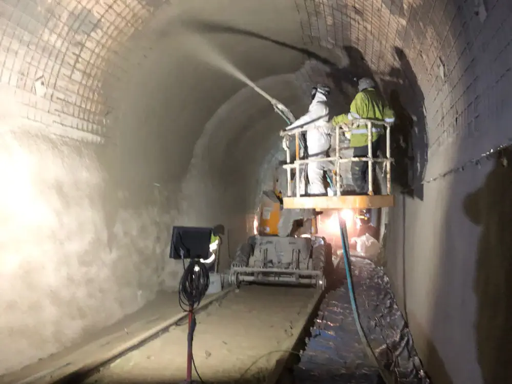Gunitado en túnel ferroviario para refuerzo y protección del revestimiento