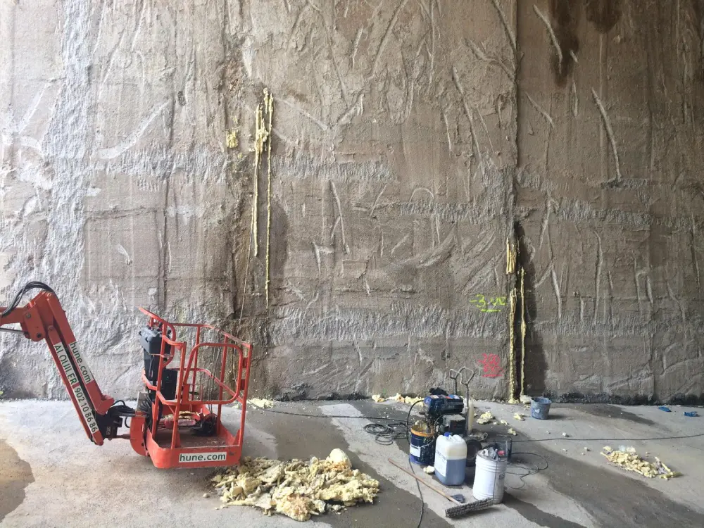 En esta intervención se ha actuado sobre un muro pantalla donde se habían detectado filtraciones a través de las juntas entre paneles, un punto especialmente sensible en este tipo de estructuras ejecutadas por módulos consecutivos y sometidas a presión hidrostática del terreno.