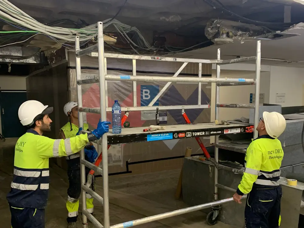 Las láminas de fibra de carbono se colocaron en la cara inferior del forjado mediante resina epoxi estructural, permitiendo aumentar la capacidad a flexión y mejorar el comportamiento frente a esfuerzos solicitantes. Este sistema aporta alta resistencia con un espesor mínimo y sin alterar la geometría del elemento.